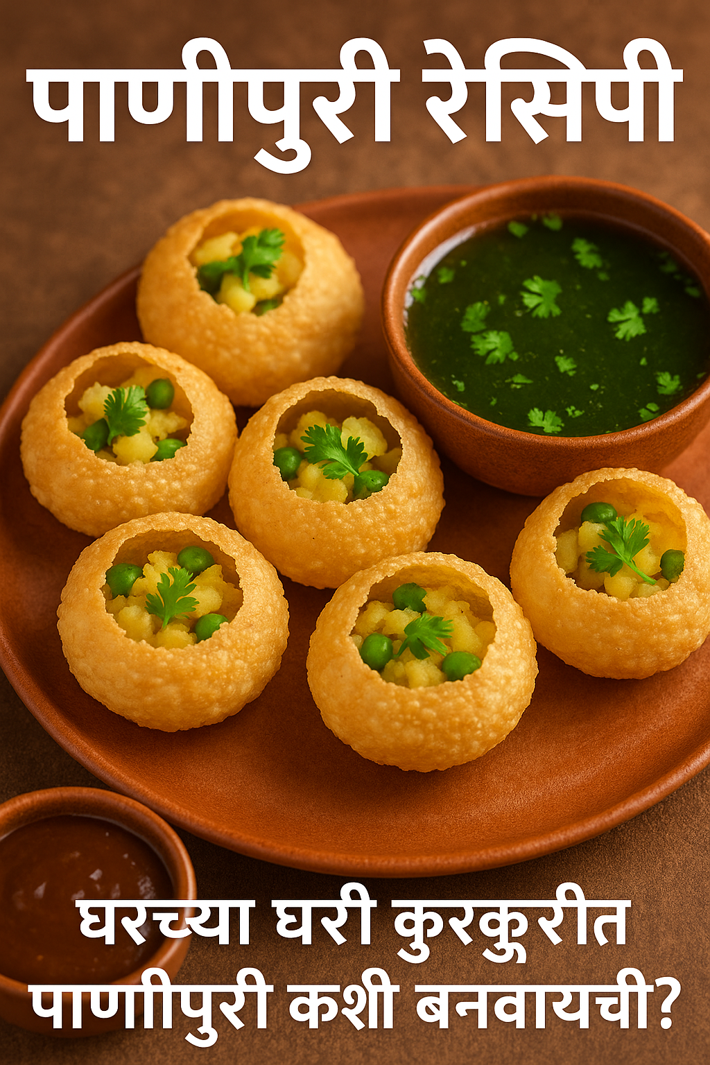 पाणीपुरी हे भारतातील सर्वात लोकप्रिय स्ट्रीट फूड! खमंग पुरी, आंबट-तिखट पाणी आणि मस्त आलू–मटाराची भाजी यामुळे पाणीपुरी सर्वांच्या आवडीचे होते. चला तर मग आज आपण घरीच अगदी सोप्या पद्धतीने पाणीपुरी बनवूया.